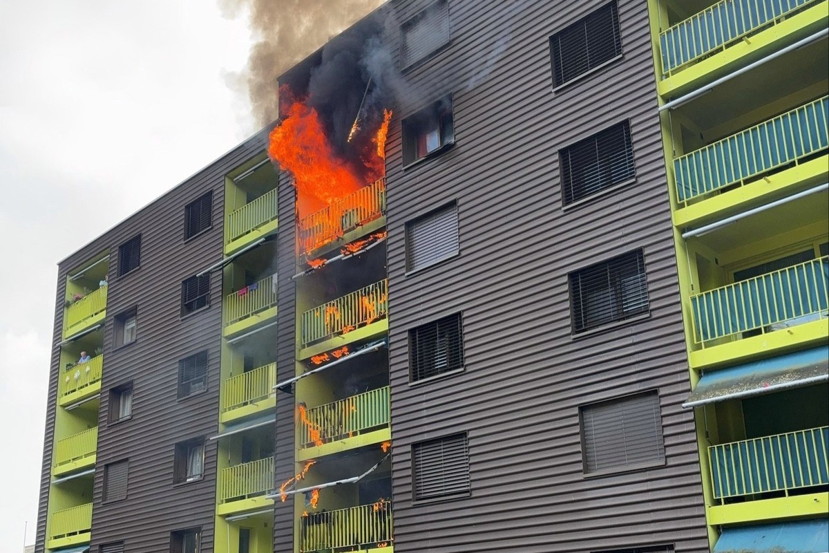 Die betroffene Wohnung stand zu diesem Zeitpunkt schon in Vollbrand. Die Bewohnenden des Gebäudes brachten sich selbstständig in Sicherheit. Umgehend startete die Berufsfeuerwehr mit einem Löschangriff von innen und aussen und konnte die Flammen so rasch löschen.